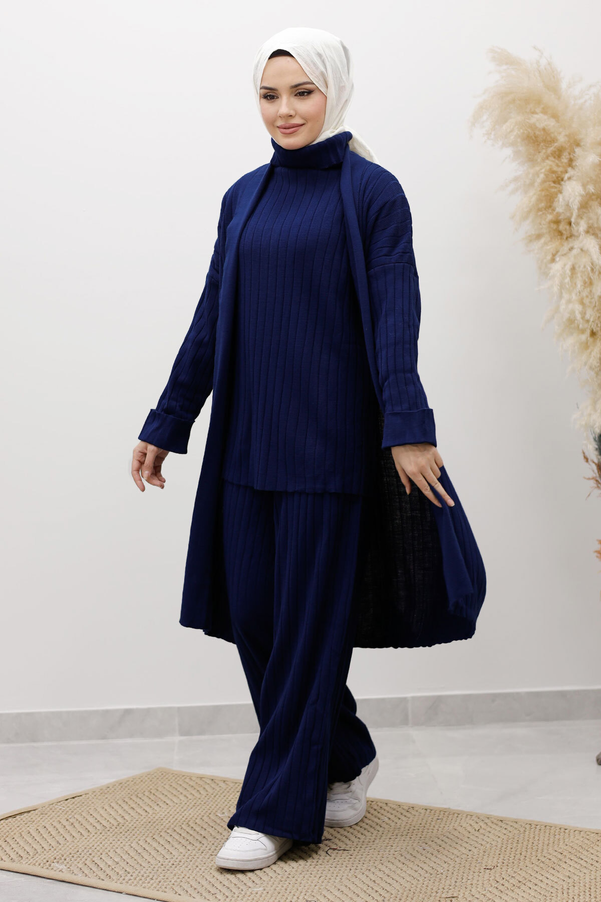 Boğazlı Üçlü Triko Takım TSD260111 Lacivert Özellikleri