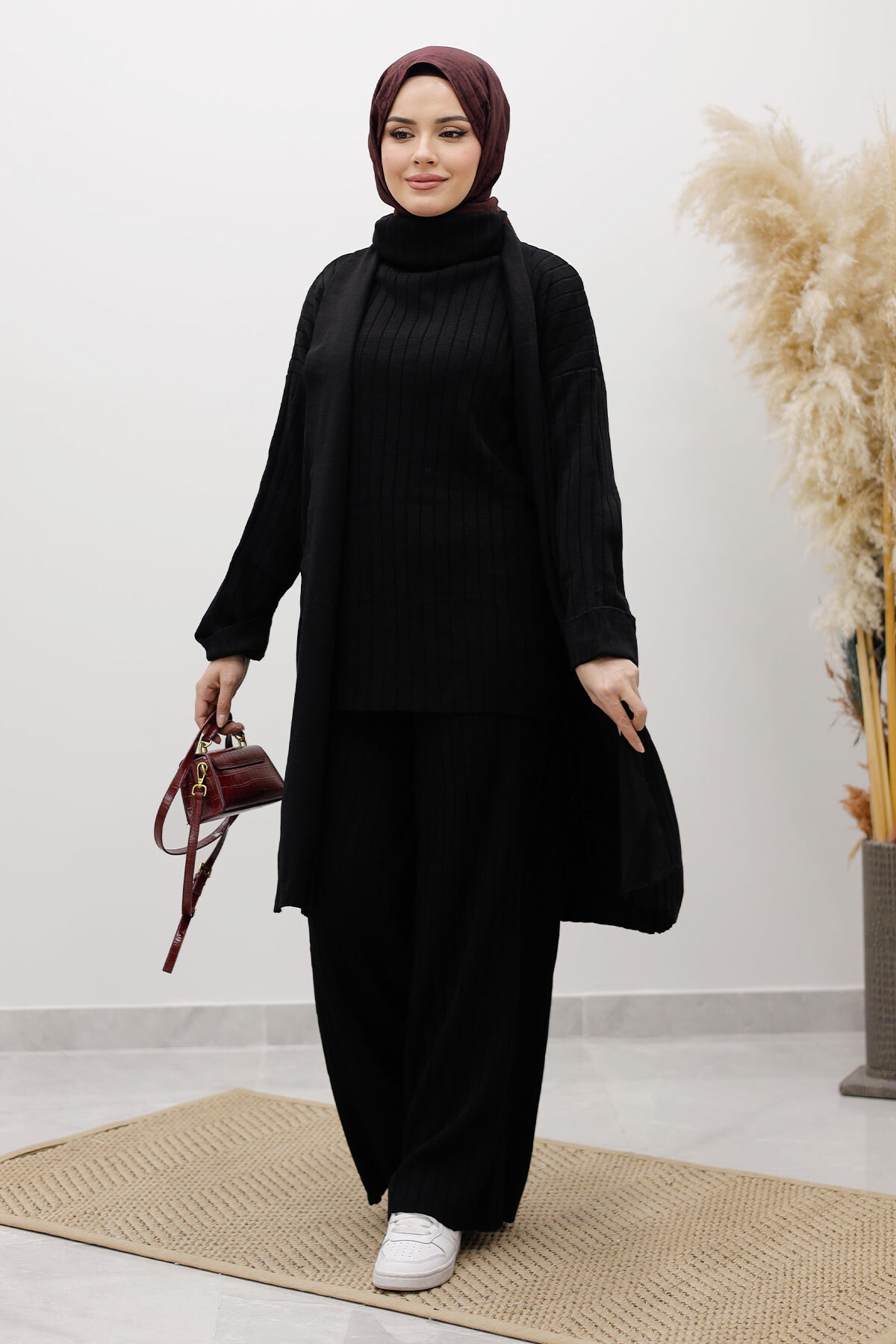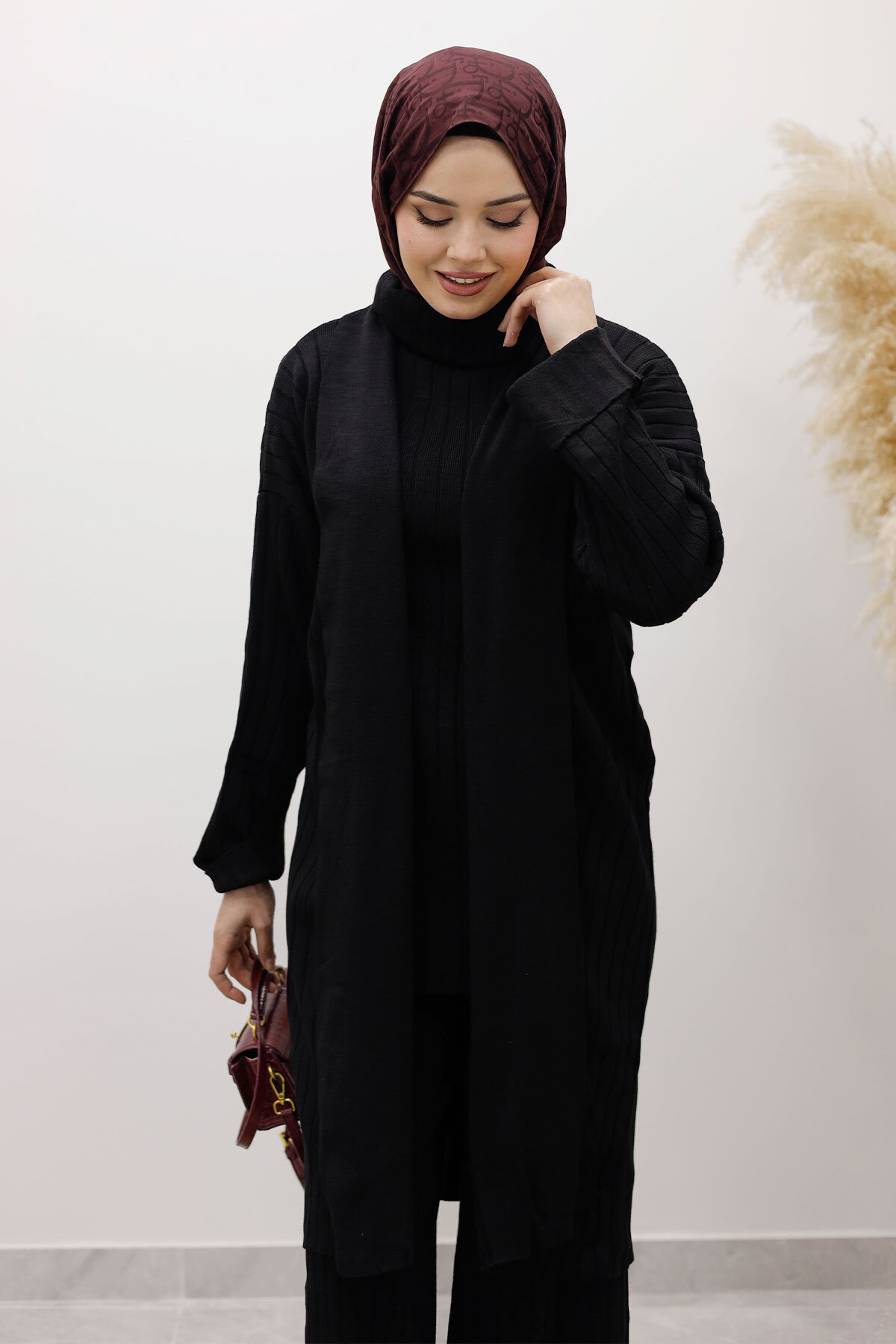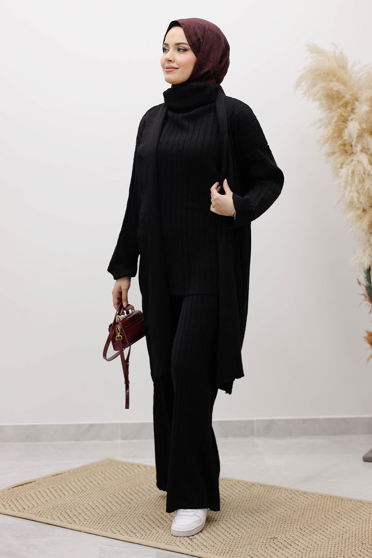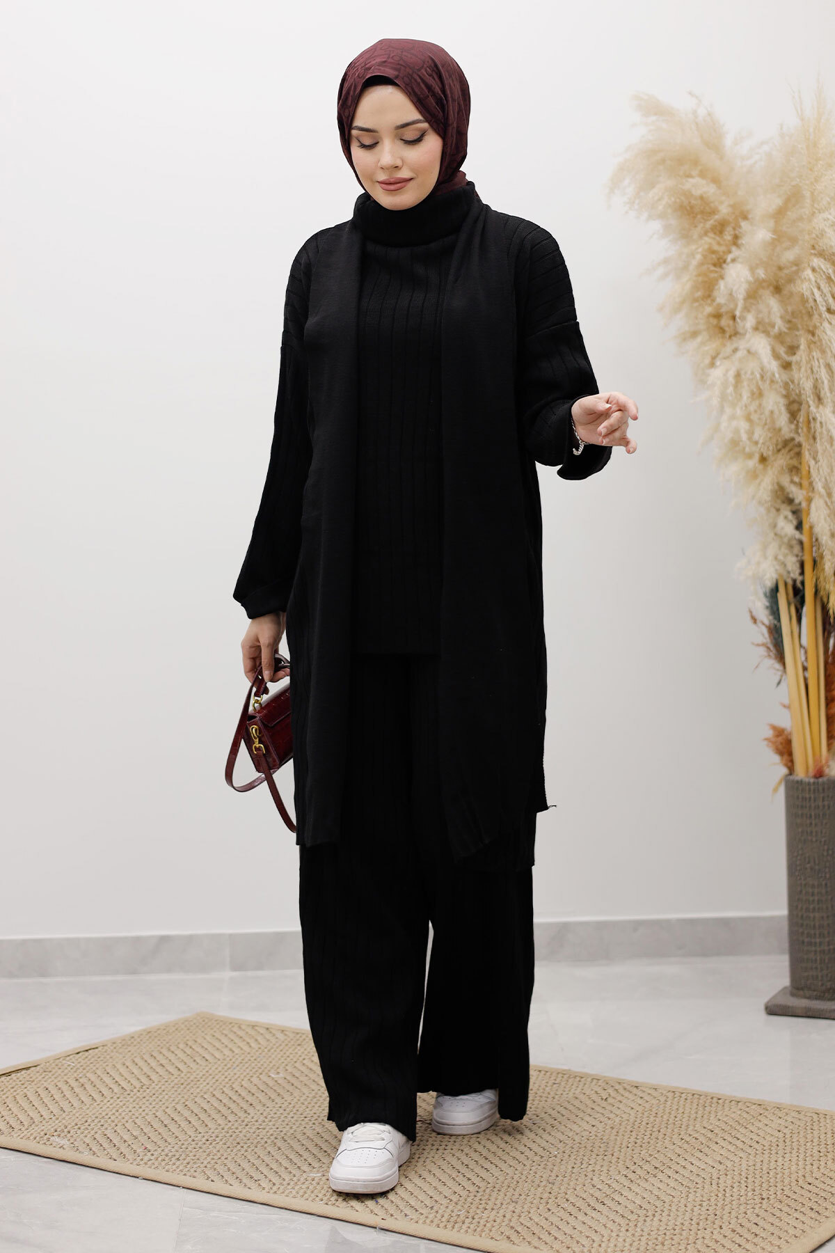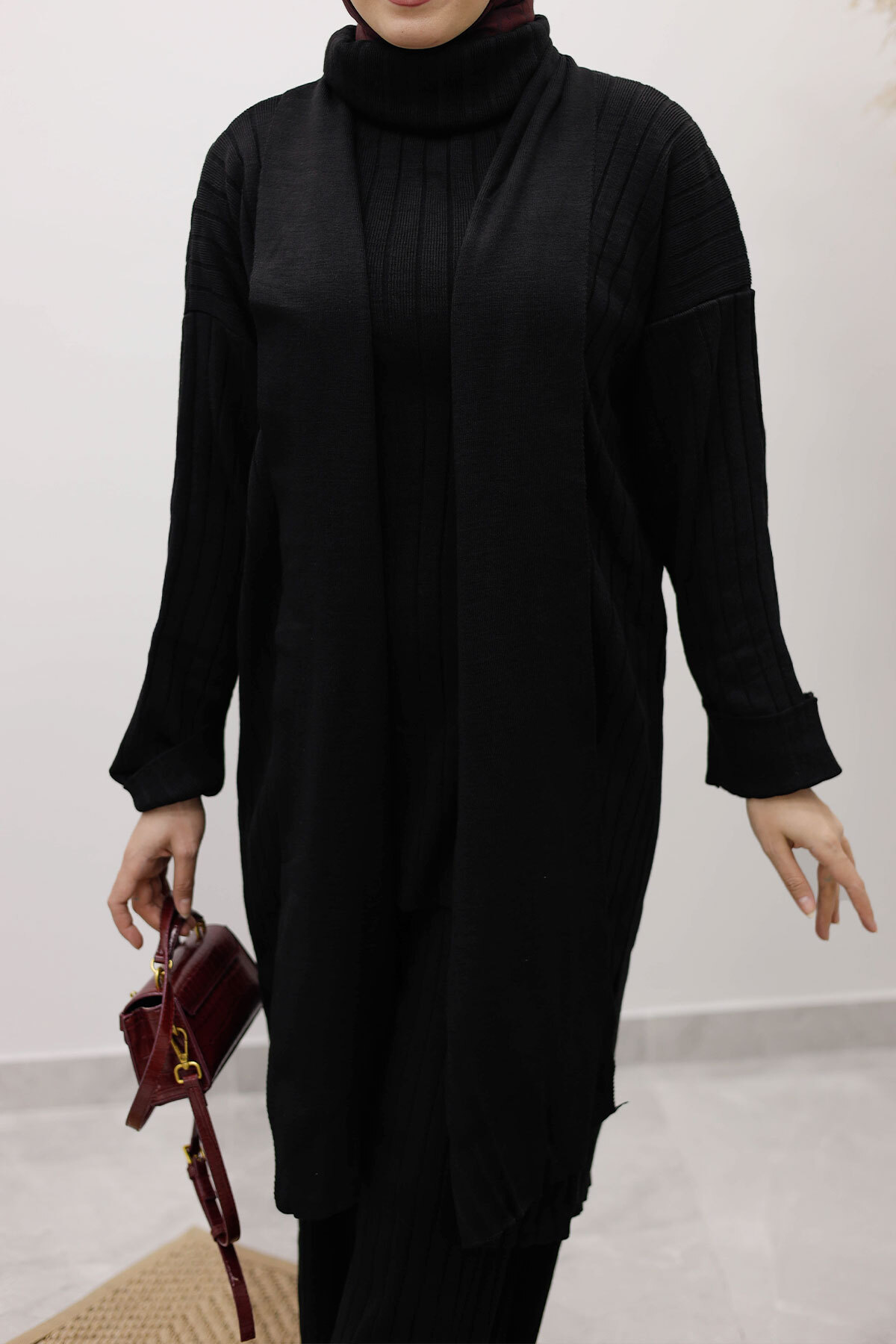 Boğazlı Üçlü Triko Takım TSD260111 Siyah Özellikleri