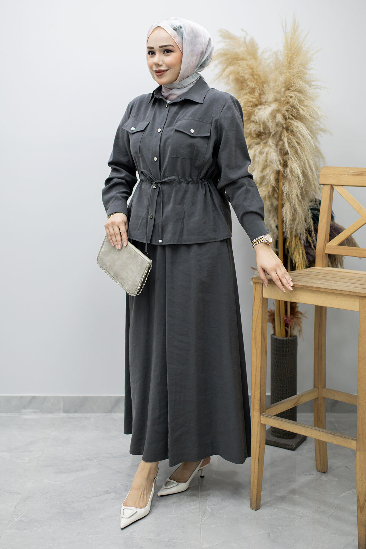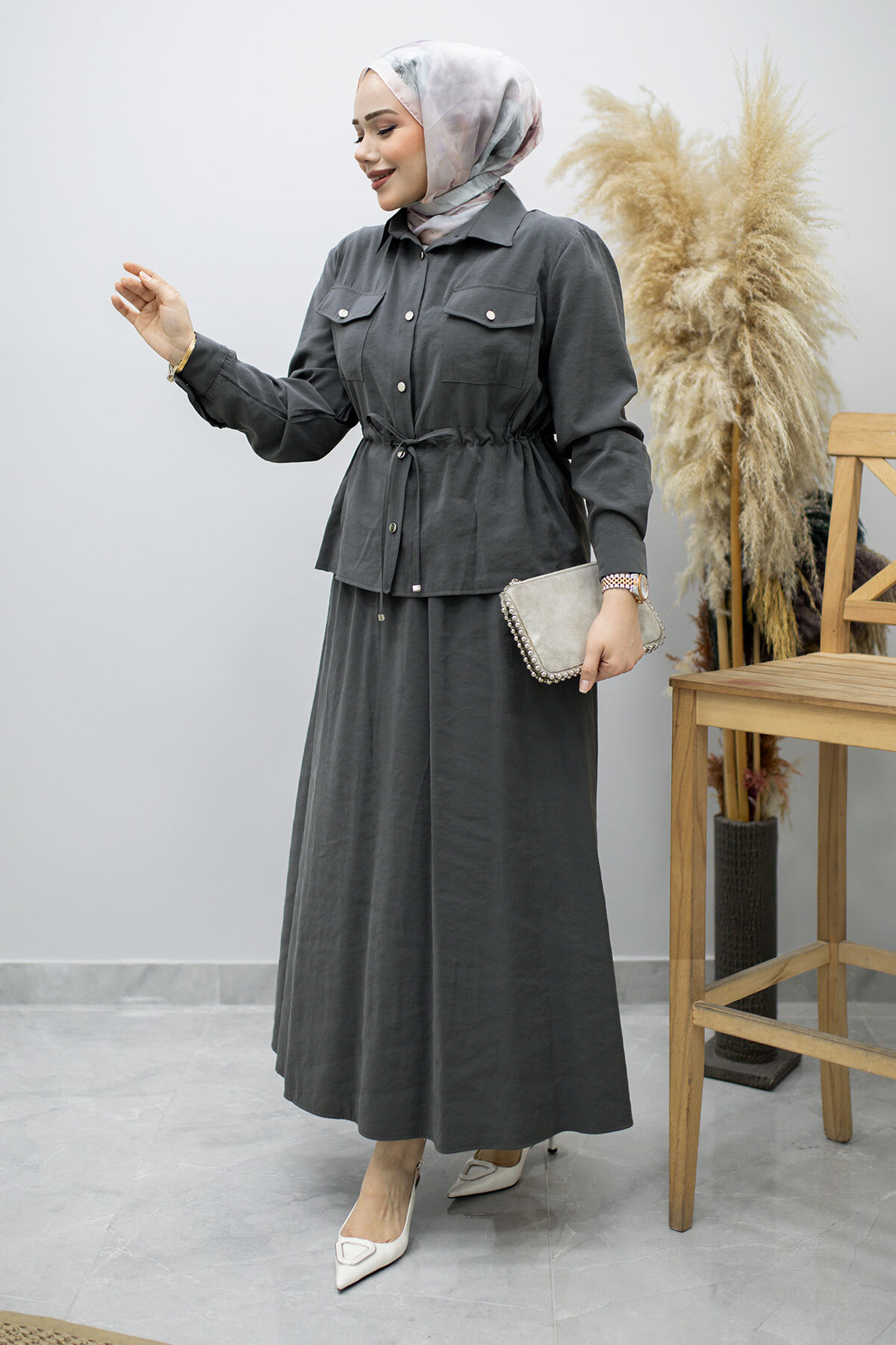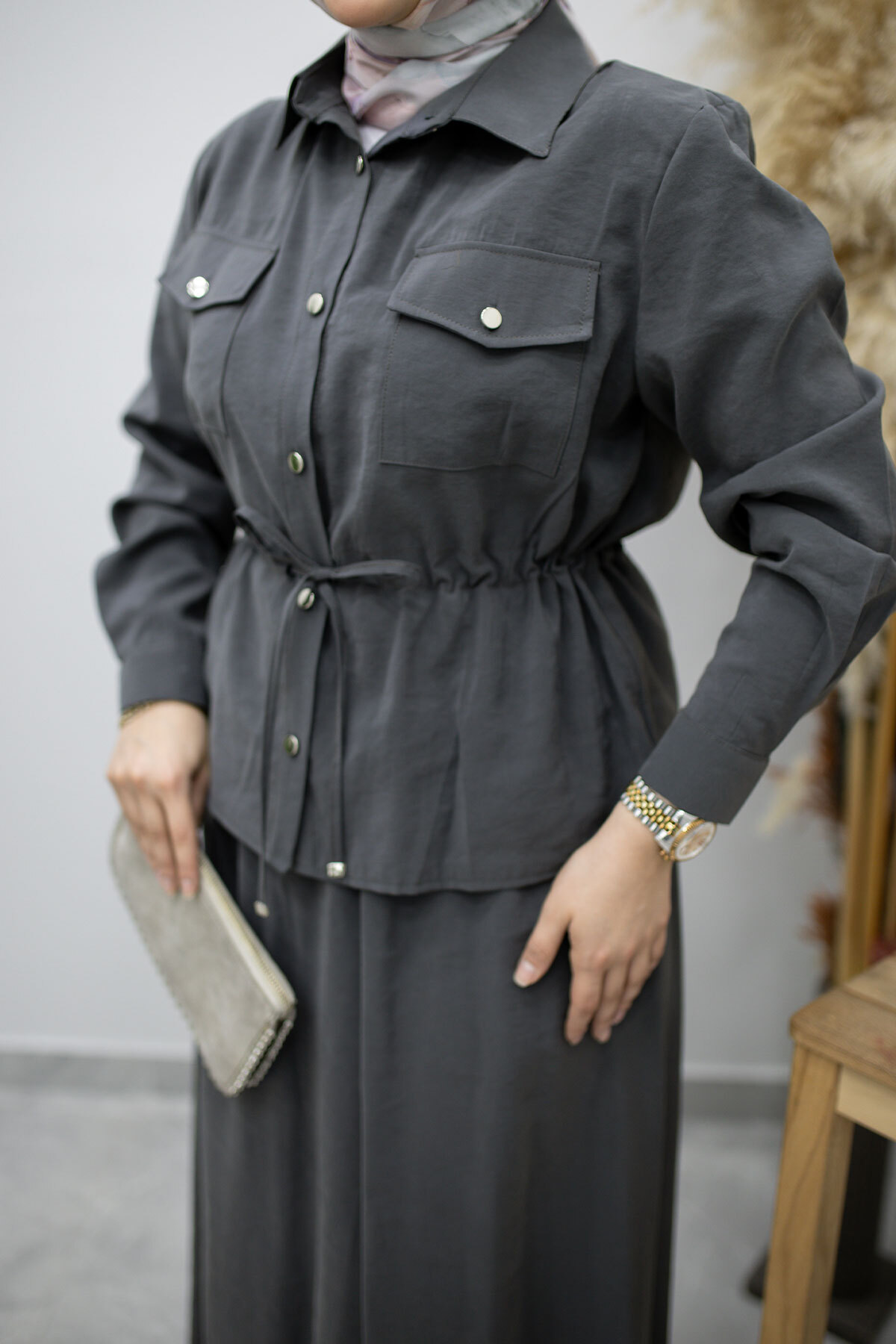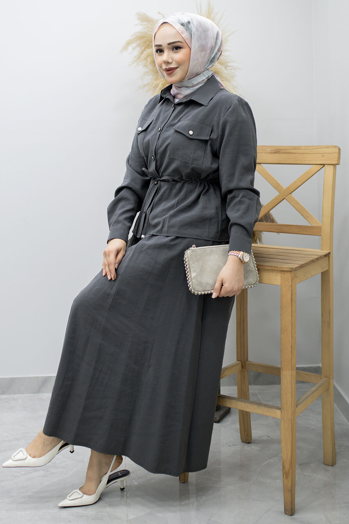 Ürün Özelliği : Yeni sezon Cepli Beli Büzgülü Etekli Takım modelidir.