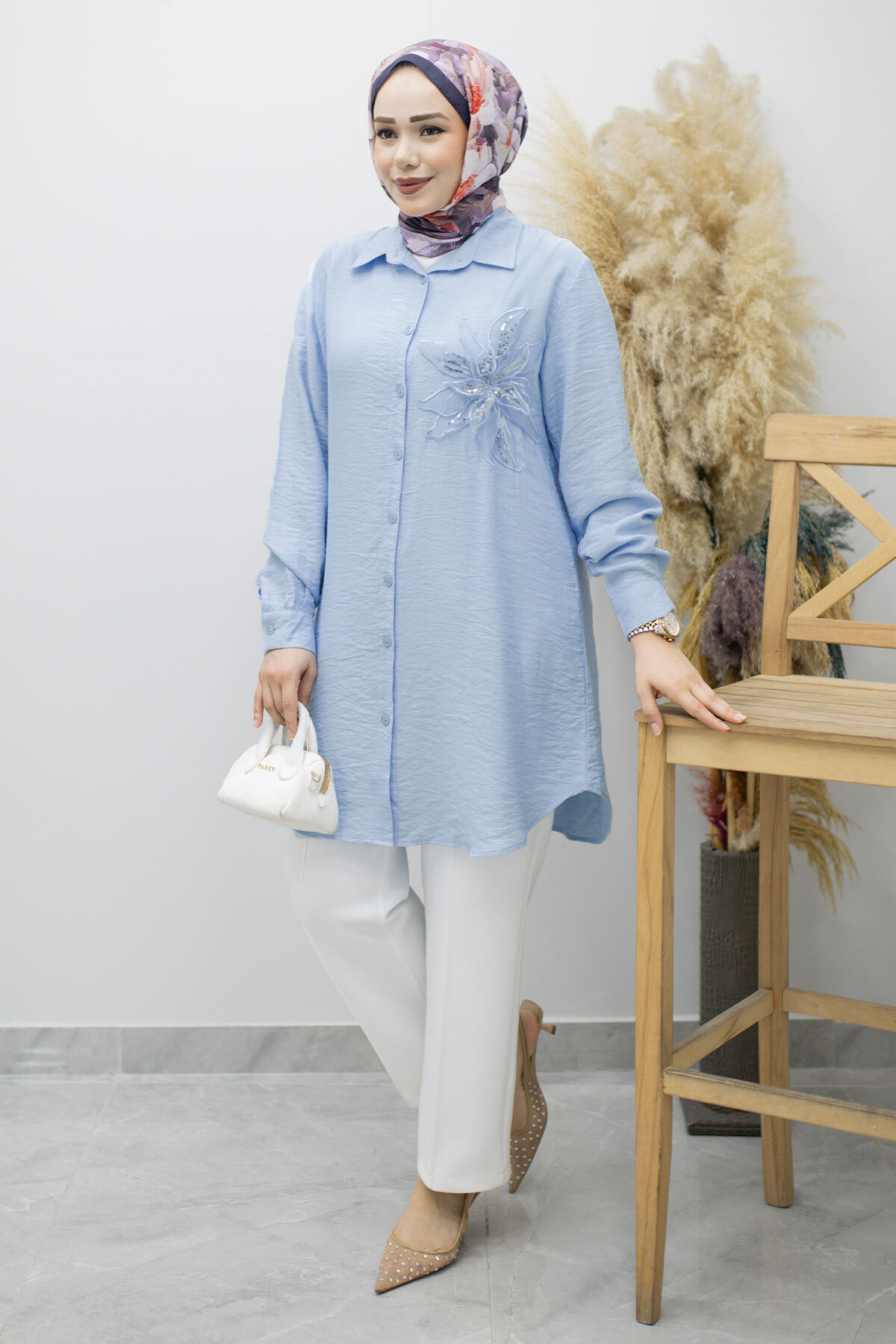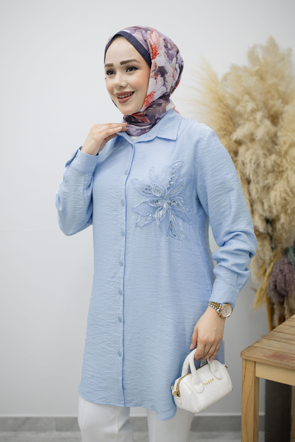 Çiçek Detaylı Gömlek TSD260193 Bebe Mavisi Özellikleri