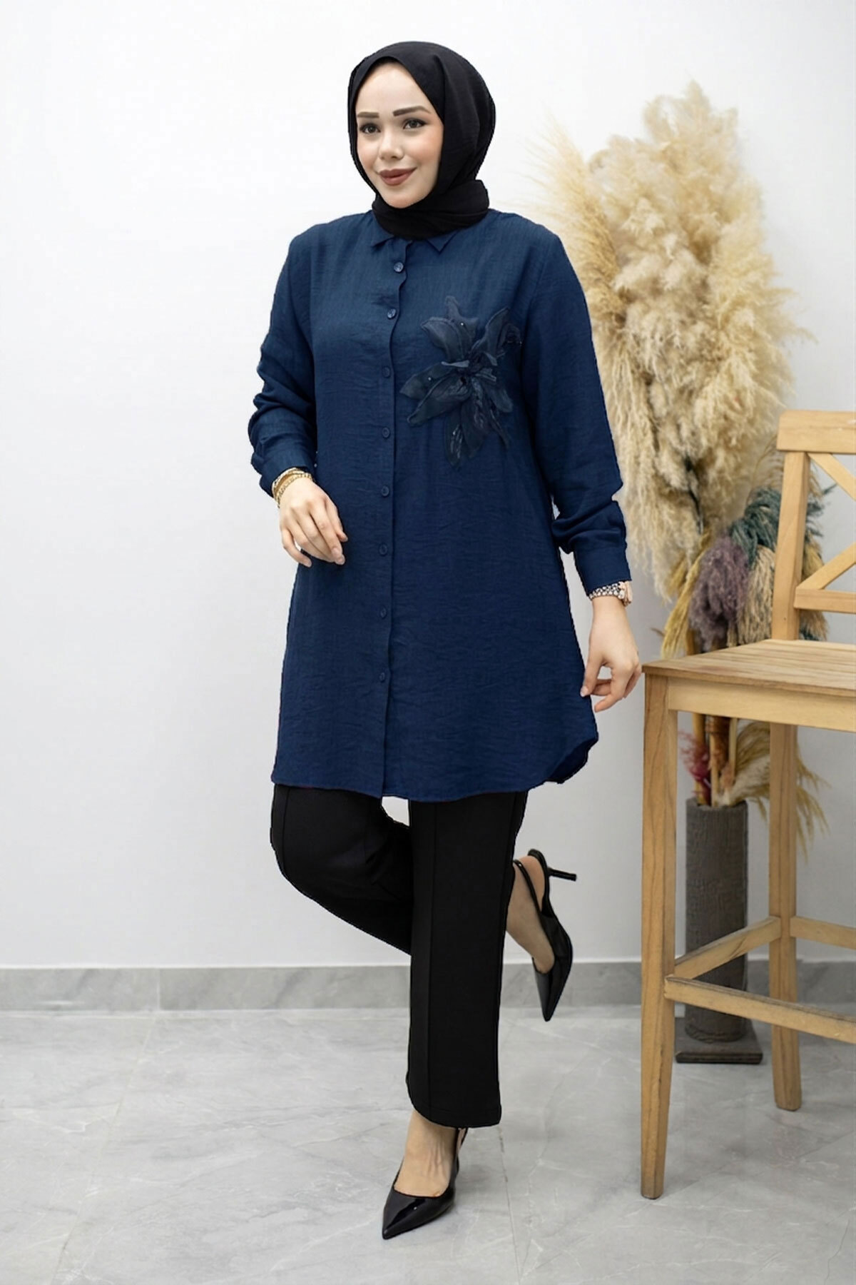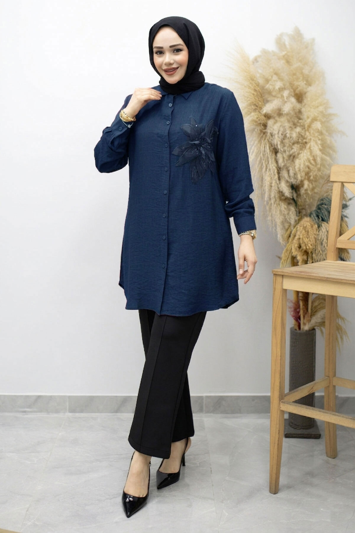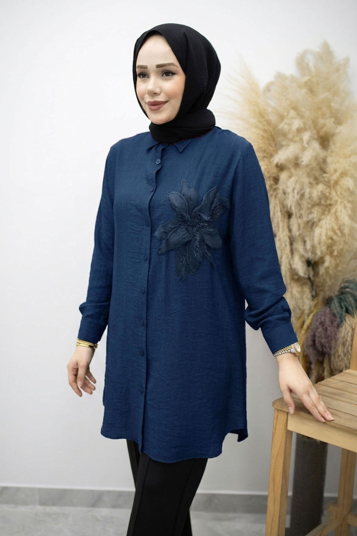 Çiçek Detaylı Gömlek TSD260193 Lacivert