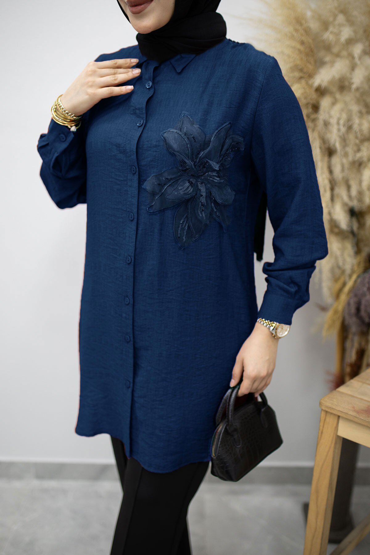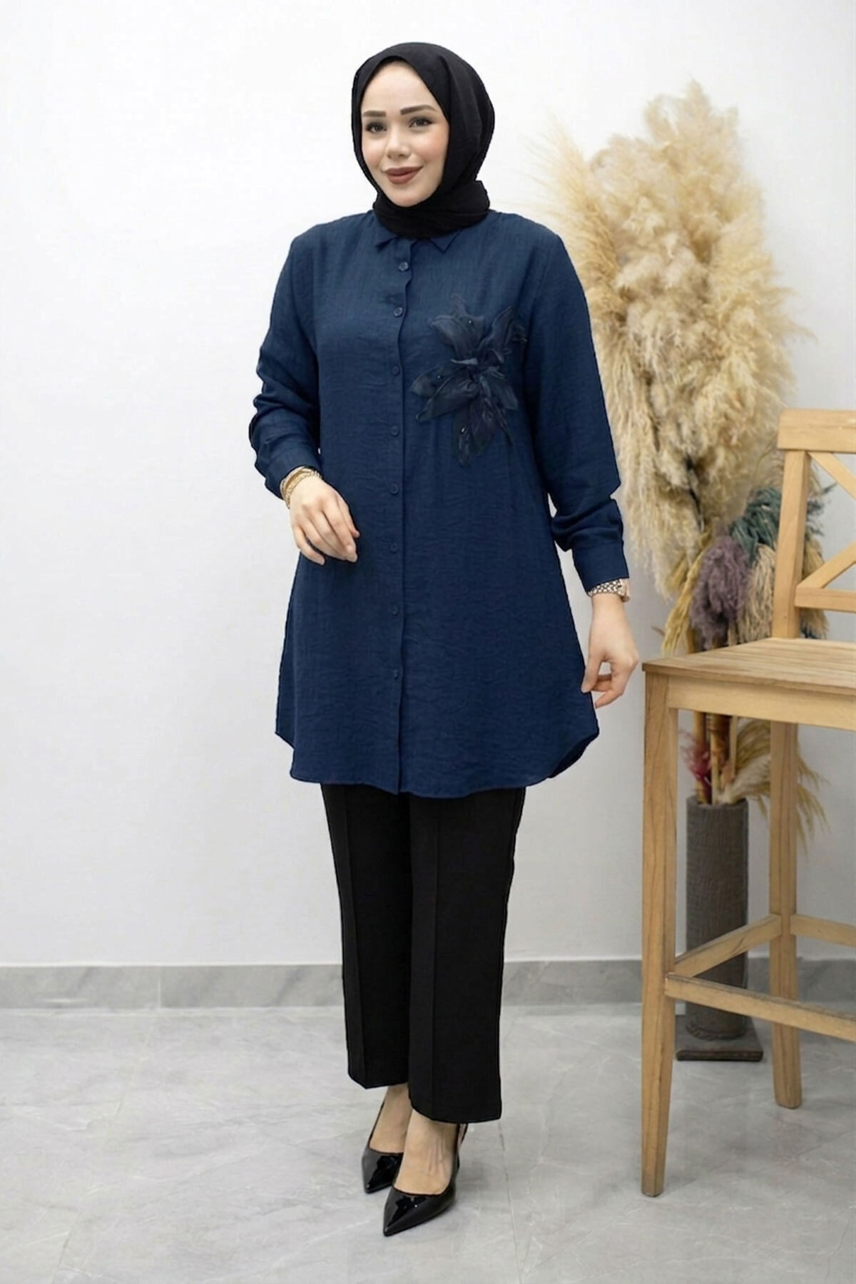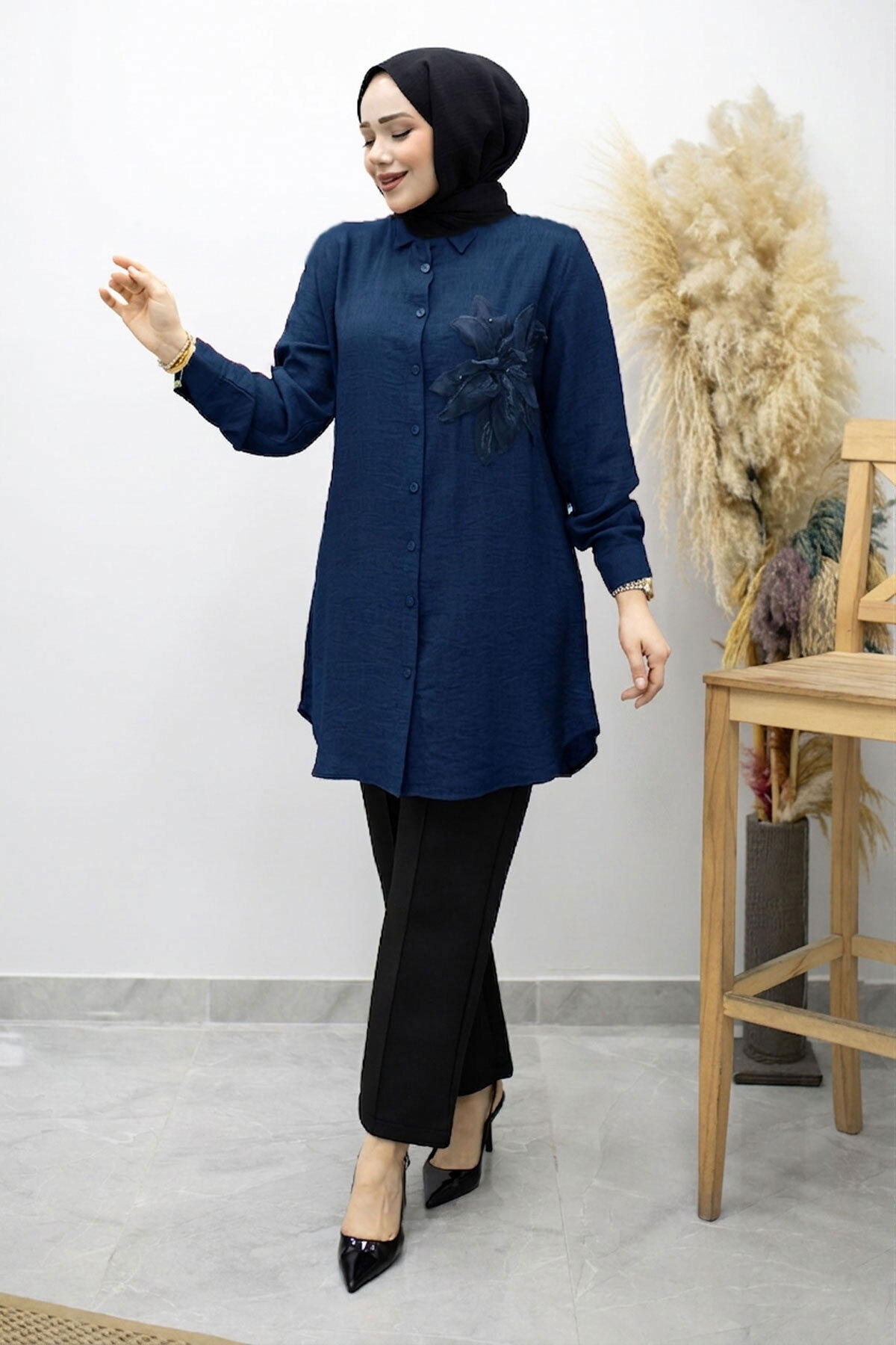 Çiçek Detaylı Gömlek TSD260193 Lacivert