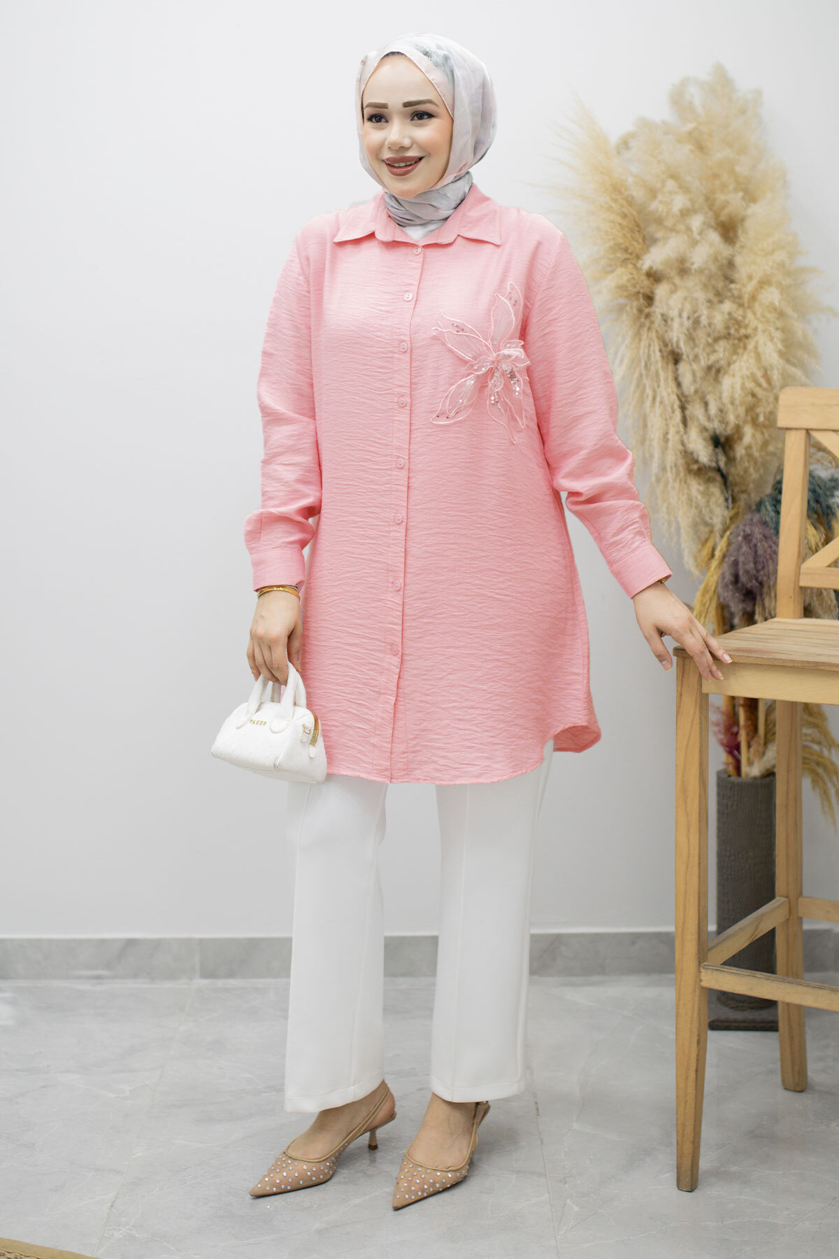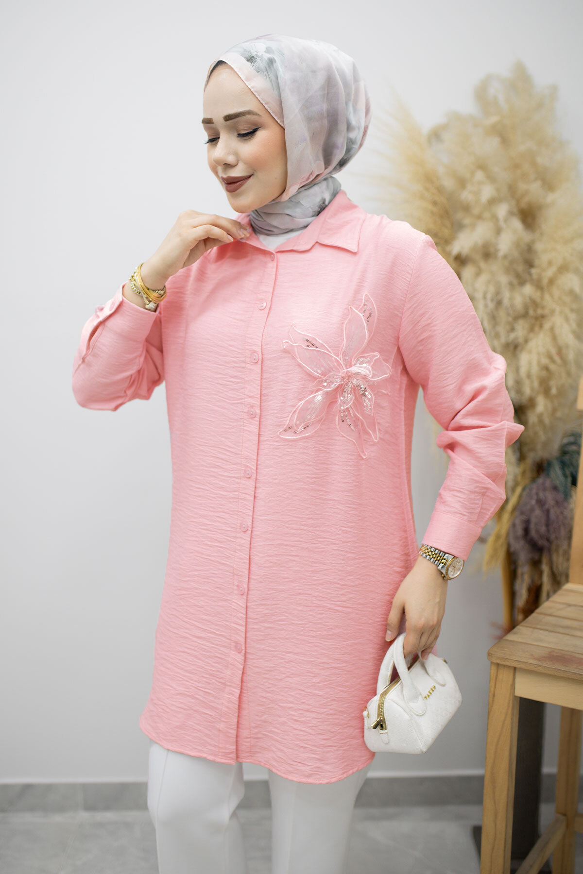 Çiçek Detaylı Gömlek TSD260193 Pembe