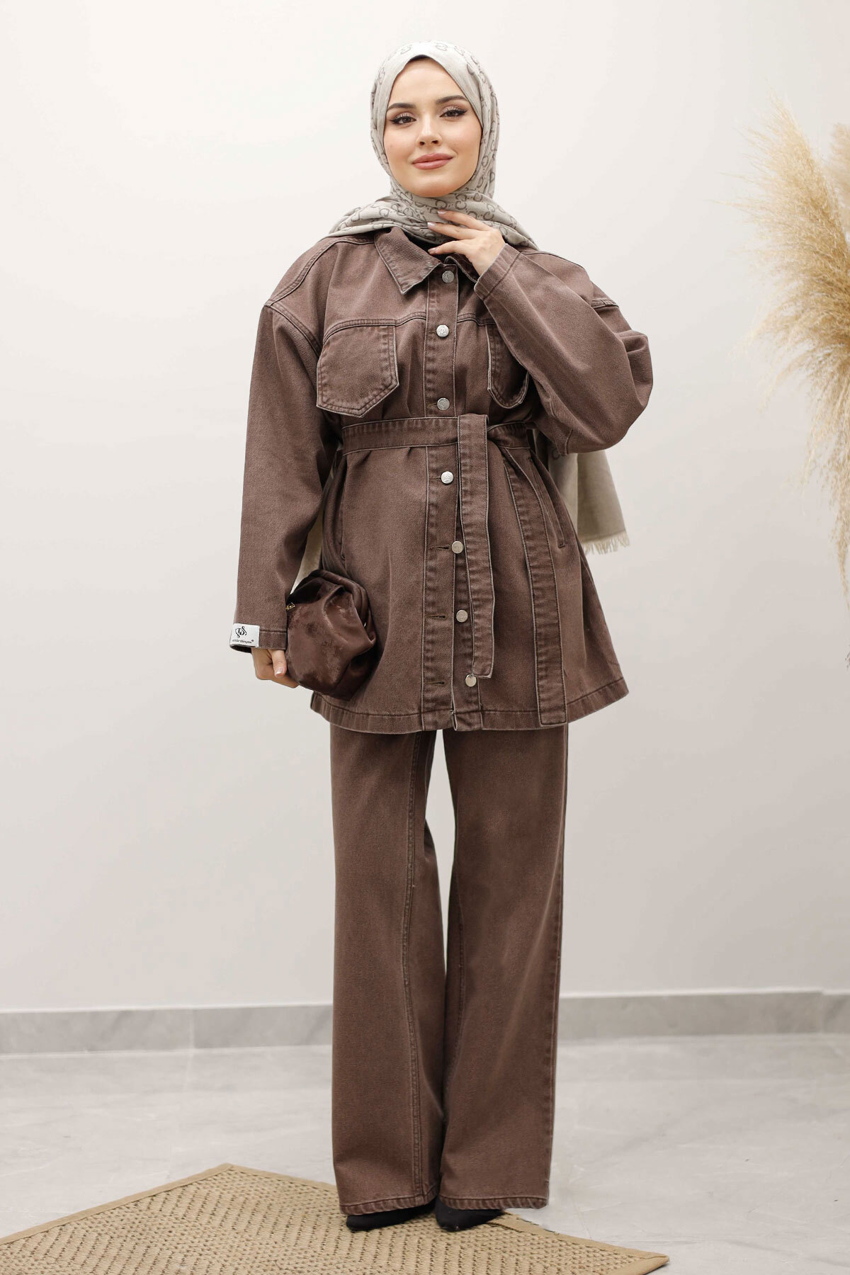Kemerli Denim Takım TSD250231 Sütlü Kahve