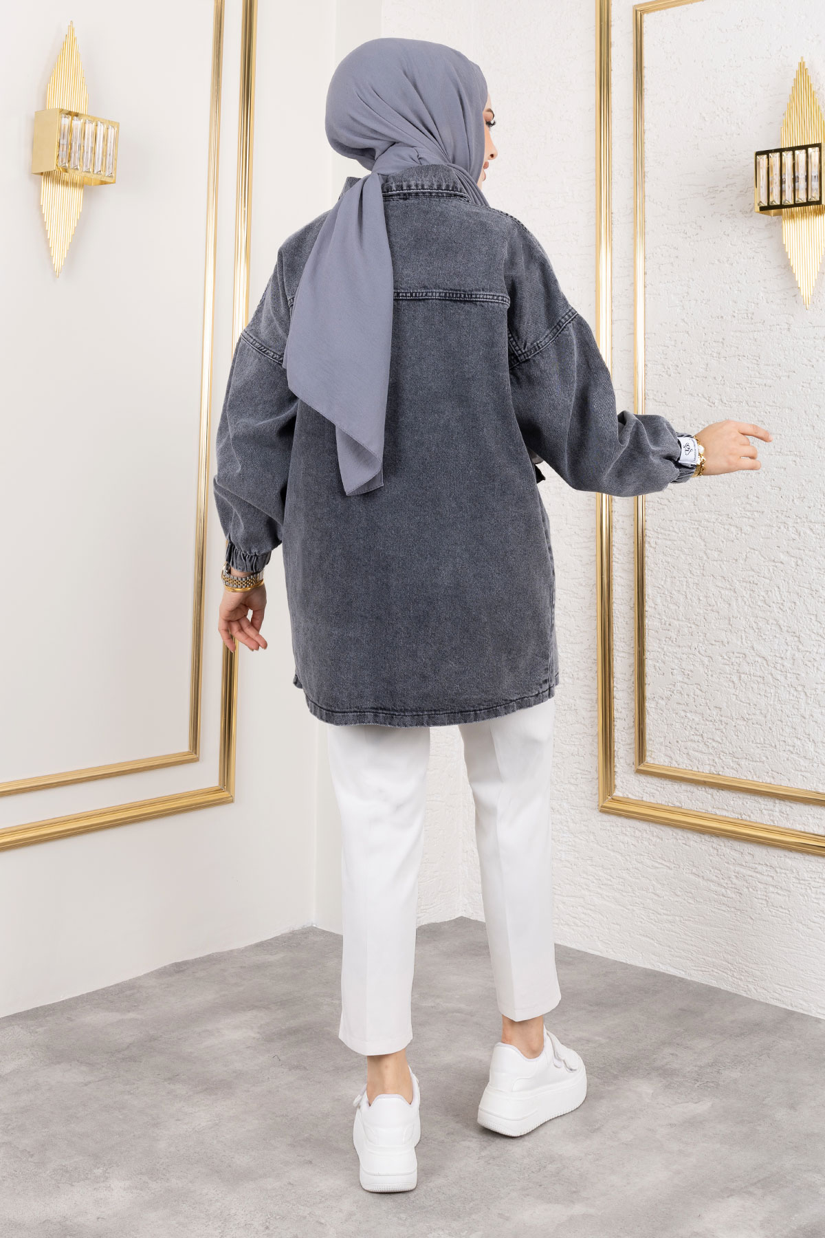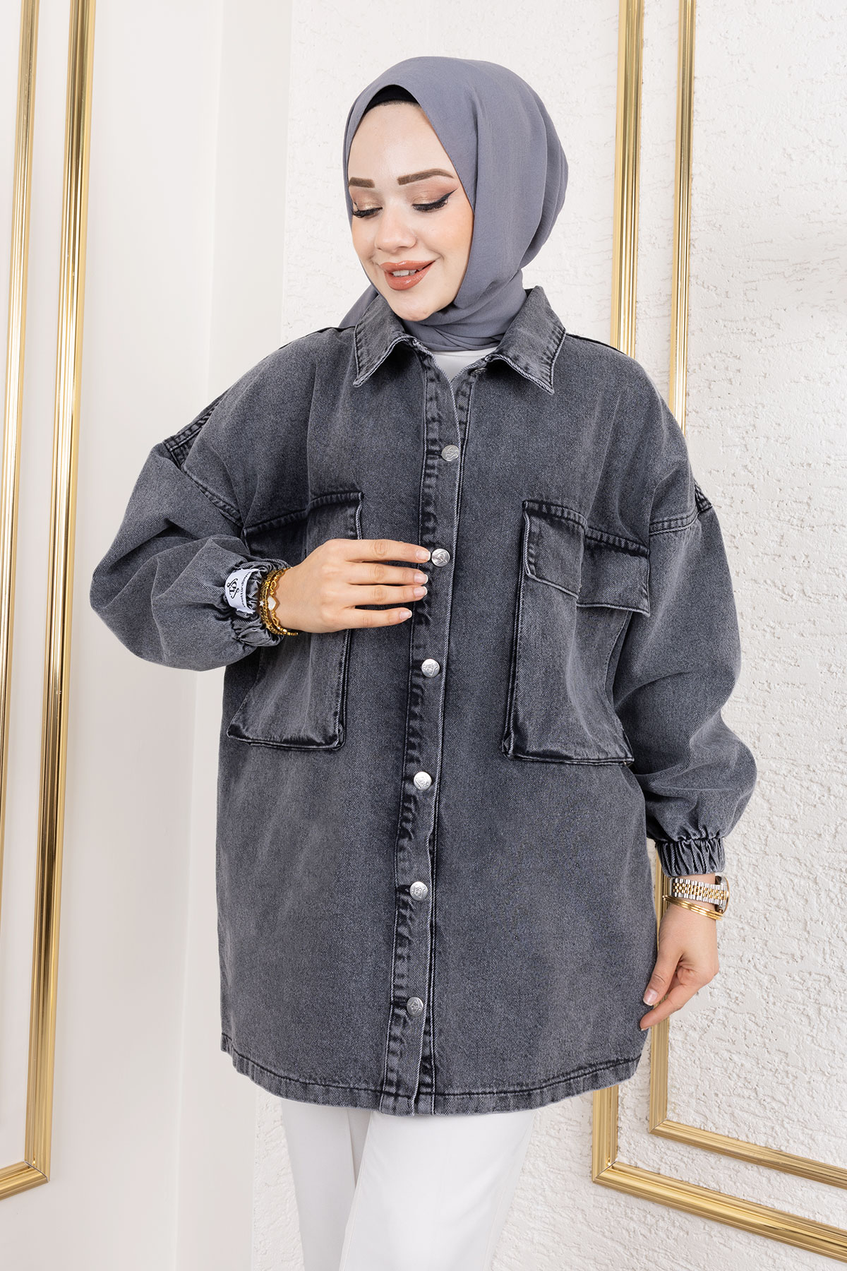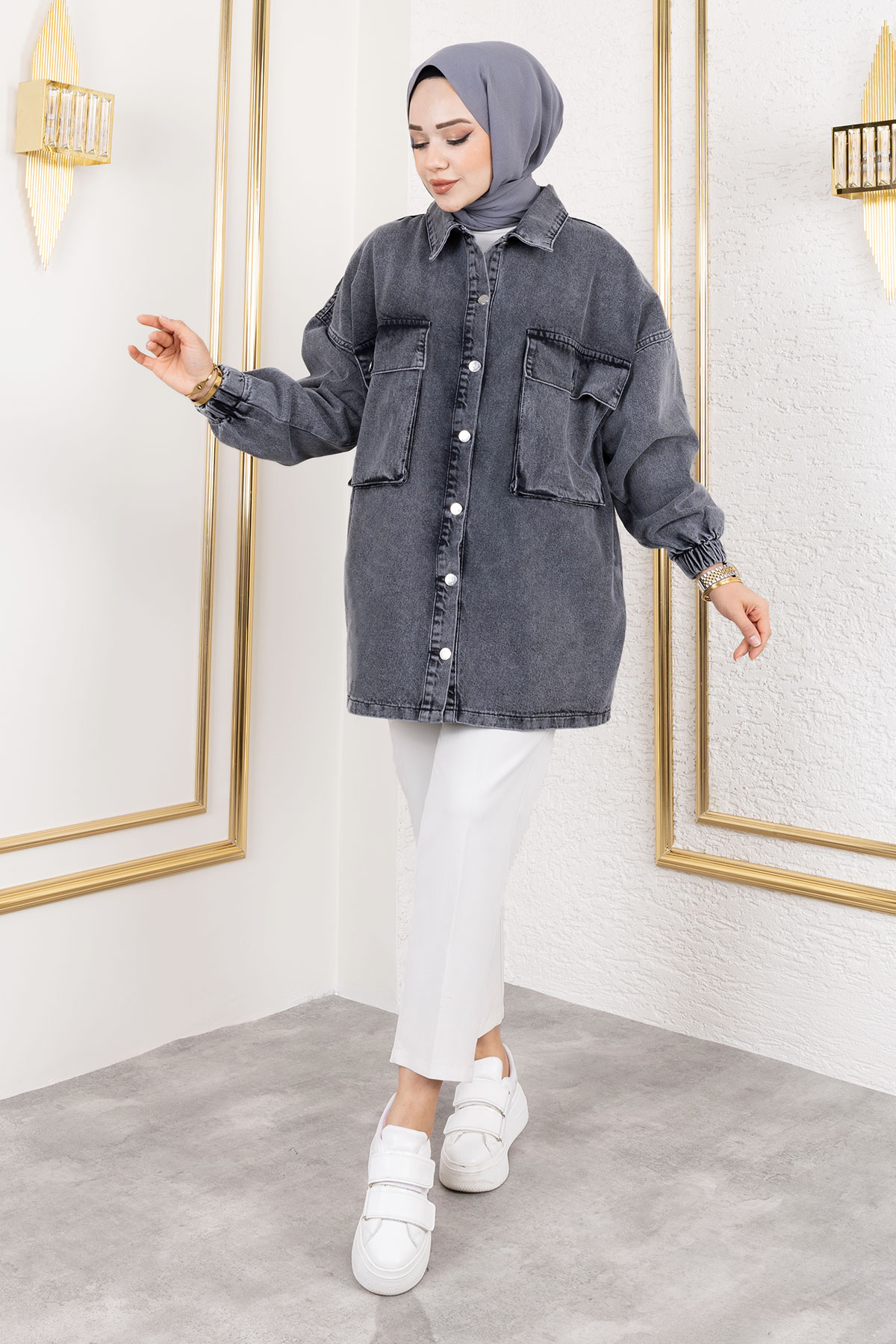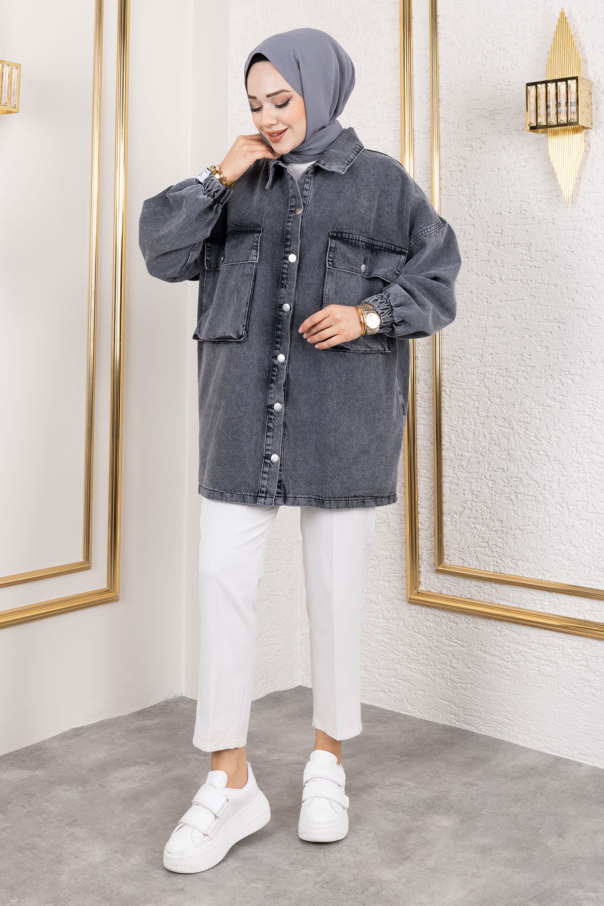 Körüklü Cepli Oversize Kot Ceket TSD250103 Antrasit
