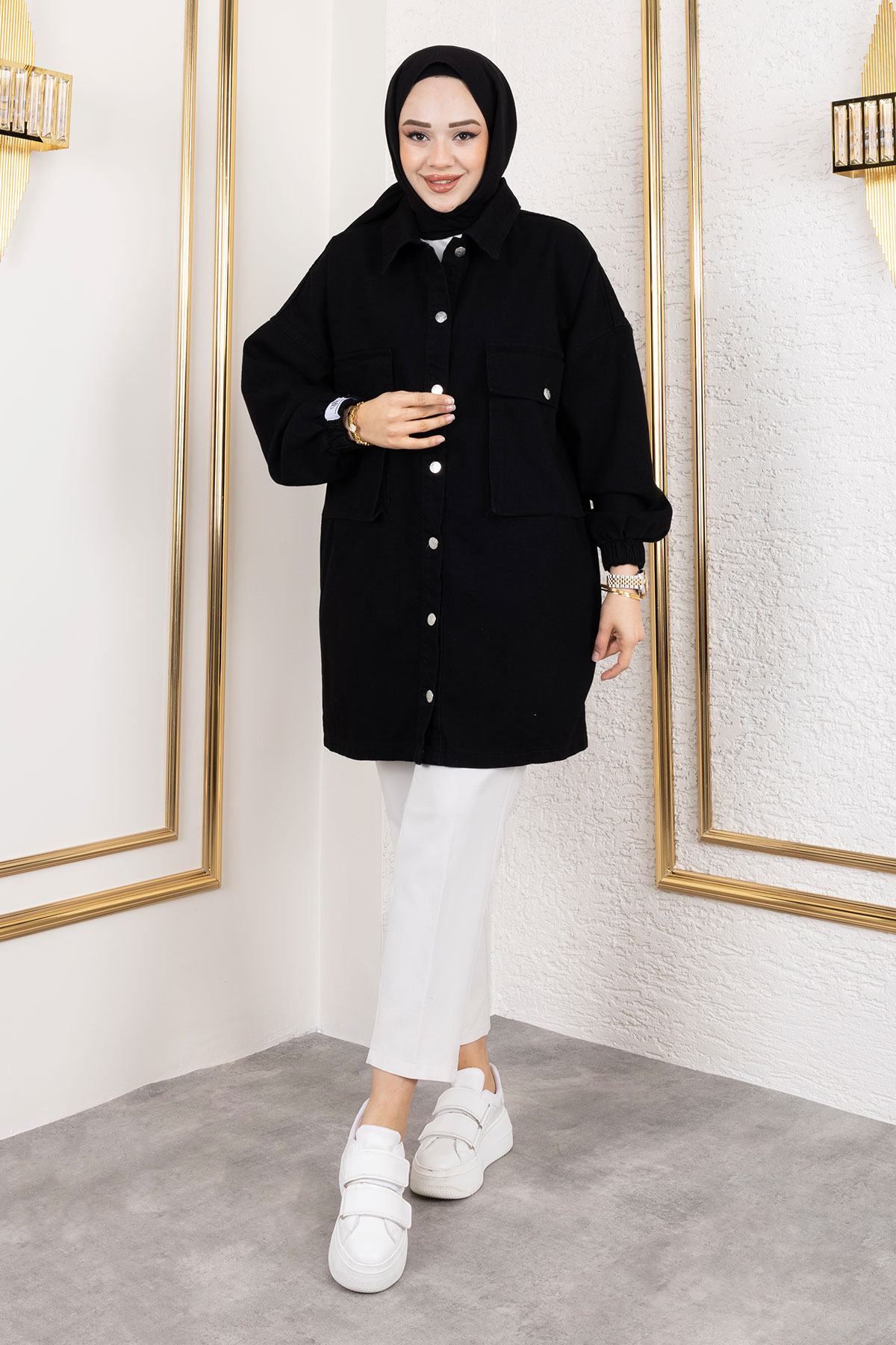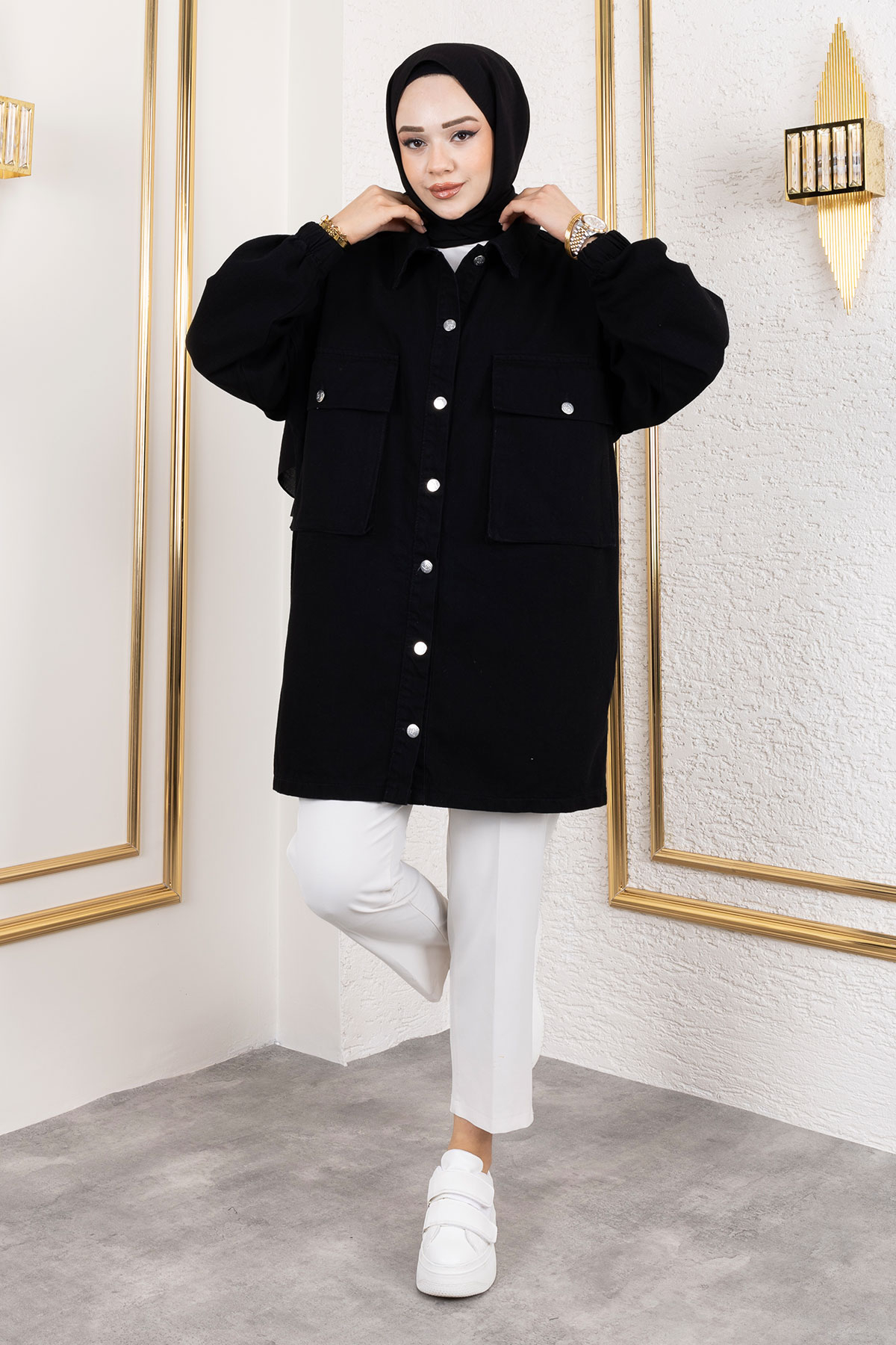 Ürün Özelliği : Yeni sezon Körüklü Cepli Oversize Kot Ceket modelidir. Göğüs kısmında iki adet kullanılabilir cep bulunmaktadır. Boydan düğmeli olup astarsız üründür. Ürün renginde konsept çekimlerinden dolayı ton farklılığı olabilir.