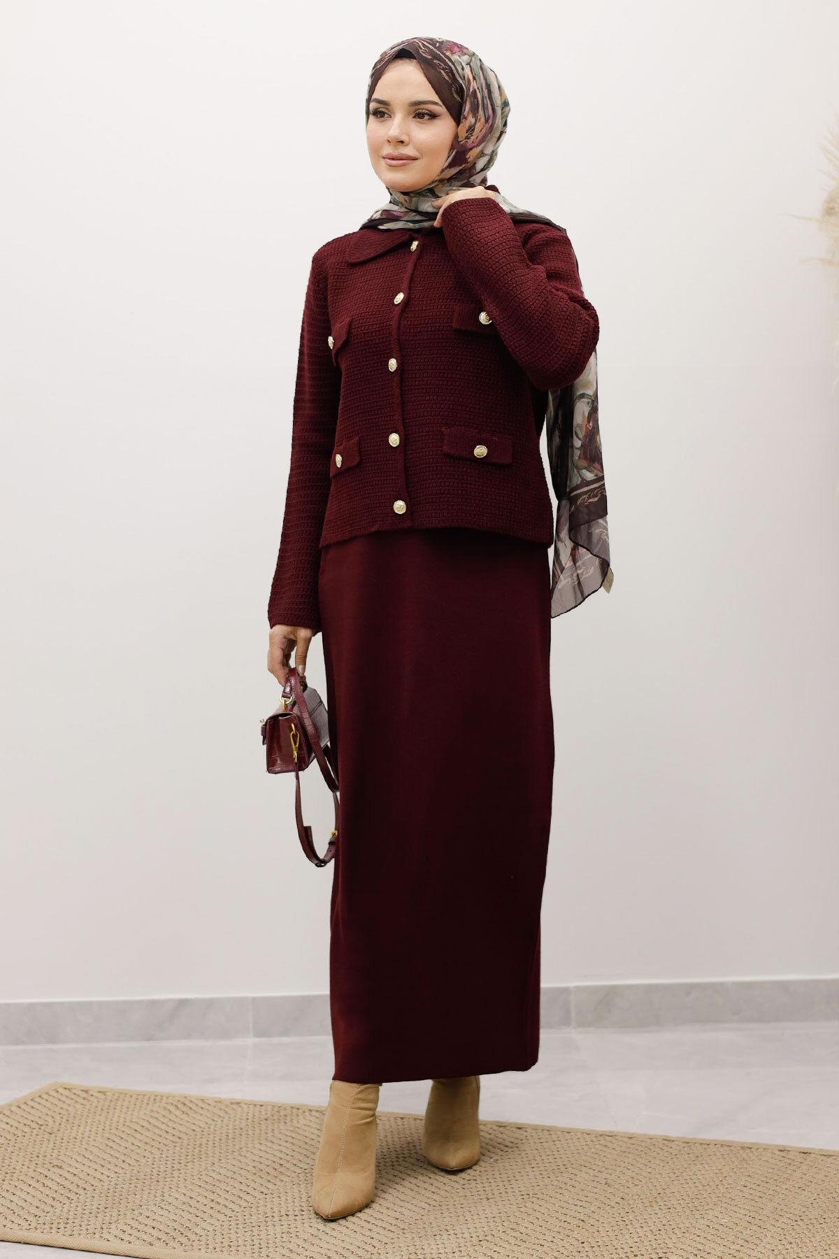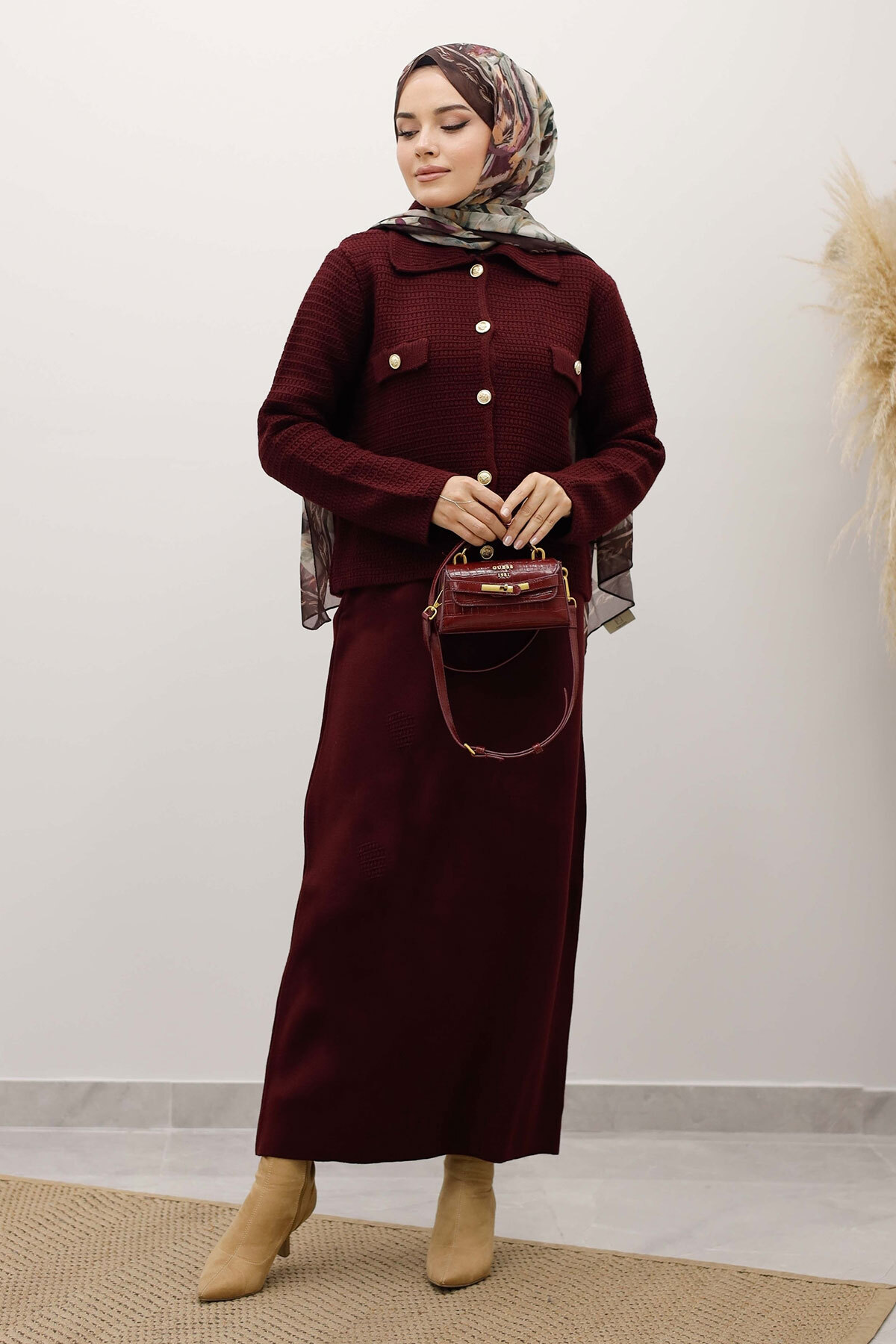 Süs Cepli Triko Hırka TSD250243 Mürdüm