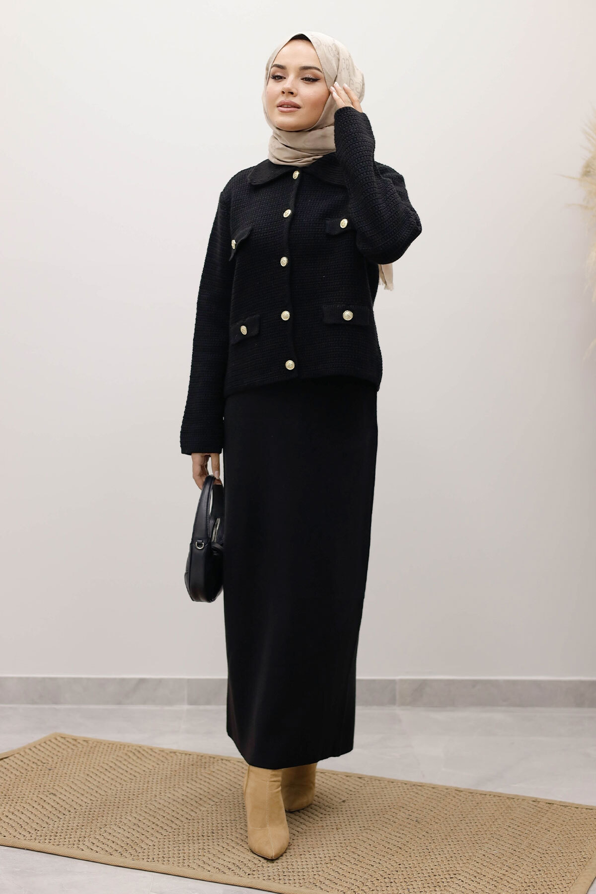 Süs Cepli Triko Hırka TSD250243 Siyah Özellikleri